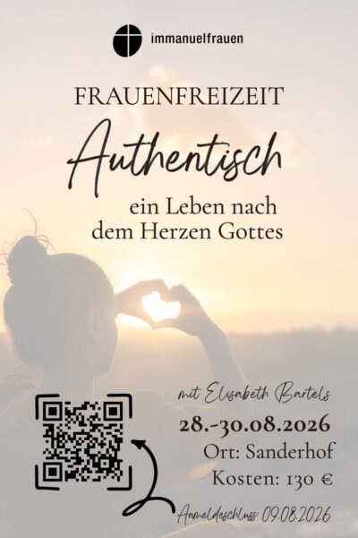 Unter dem Thema „Authentisch – ein Leben nach dem Herzen Gottes“ wollen wir gemeinsam unterwegs sein und uns inspirieren lassen von wertvollen Gedanken aus dem Leben Davids – mit Impulsen von Elisabeth Bartels.
